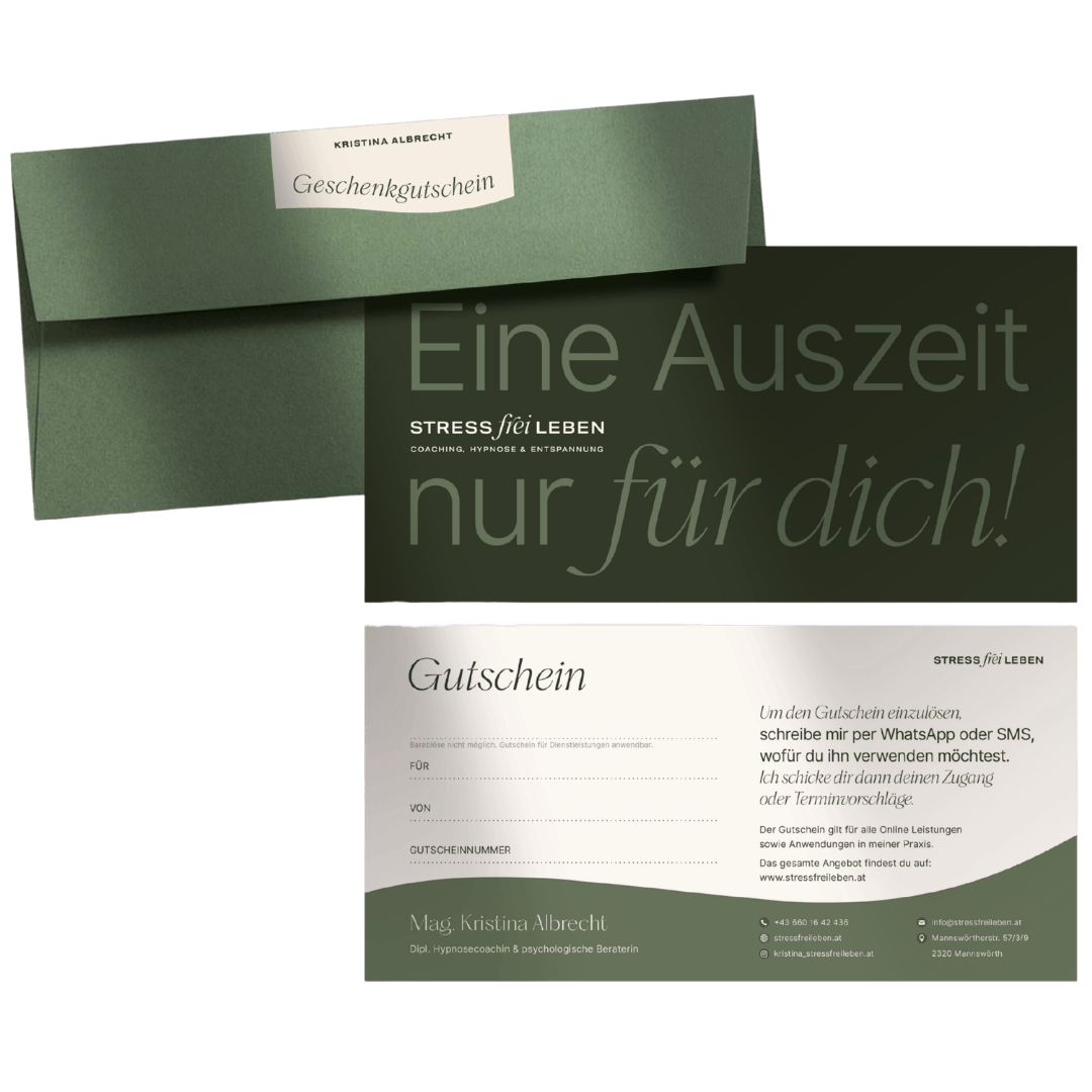 Ob mehr Selbstvertrauen, innere Ruhe, gesunde Grenzen oder Leichtigkeit im Alltag: Ich begleite dich Schritt für Schritt auf deinem Weg – mit Coaching, Hypnose und ergänzenden Entspannungsanwendungen.