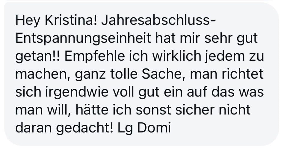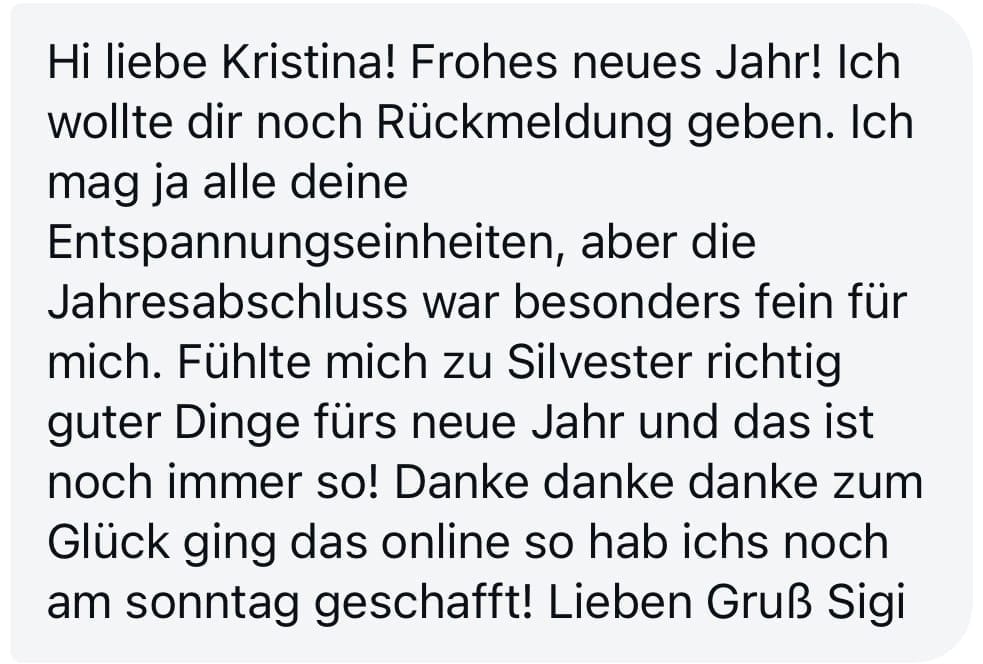Du bekommst bis einschließlich 07.01.2026 Zugang zu deiner Jahres-Reset Entspannungsreise. Das ist genug Zeit, um sie dieses Jahr ganz in deinem eigenen Tempo zu machen. 💫