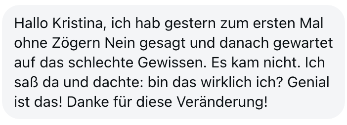 Statt ständig „Ja" zu sagen, obwohl du eigentlich „Nein" meinst, und dich danach ausgelaugt und übergangen zu fühlen, lernst du, klare Grenzen zu setzen, ohne dich zu rechtfertigen.